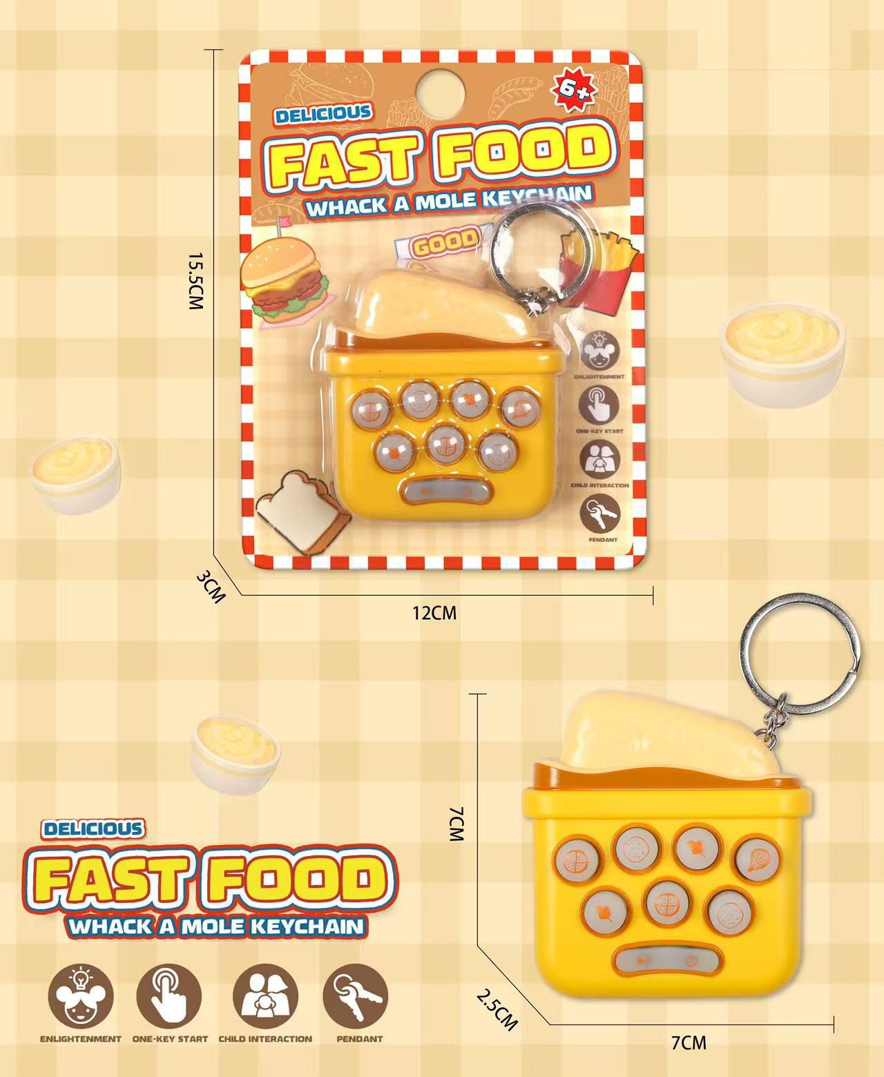 CHICKEN NUGGET WHACK A MOLE KEYCHAIN W/LIGHT&MUSIC&BUTTON BATTERY