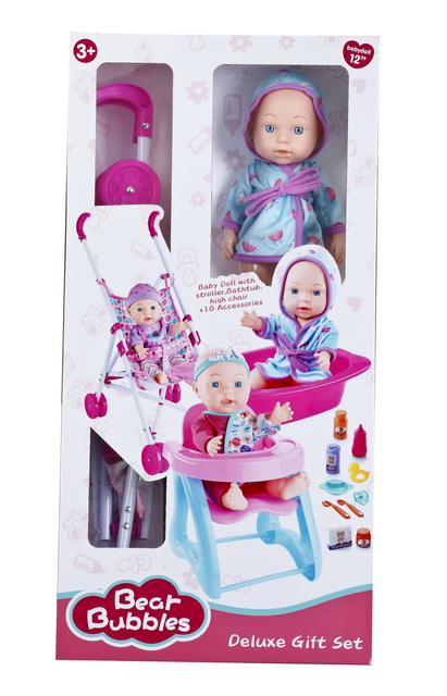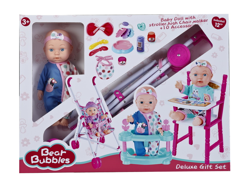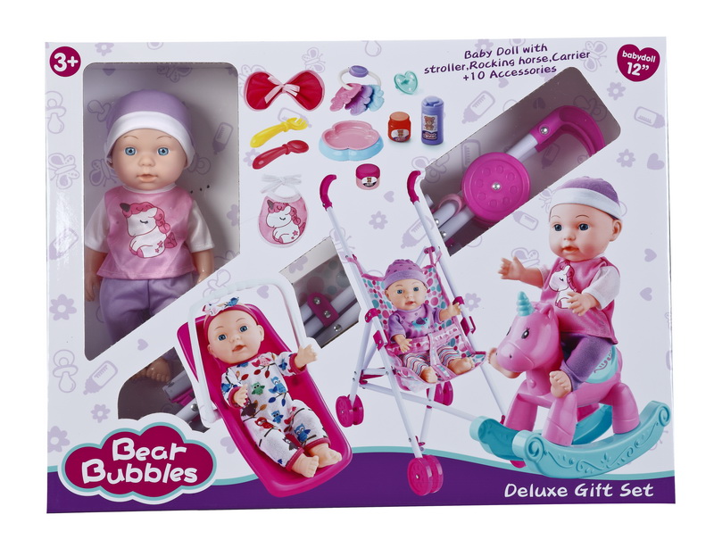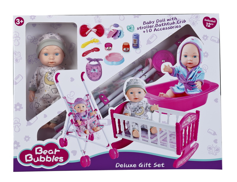 12''EMPTY BODY DOLL SET W/PLASTIC CARRIAGE
