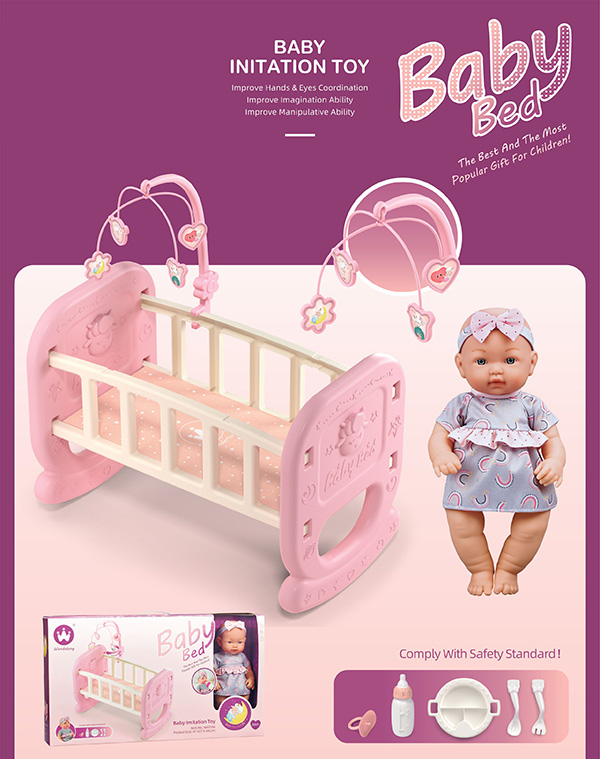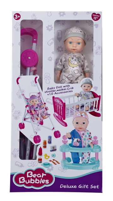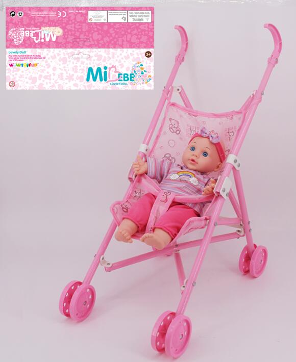 12''COTTON BODY DOLL W/PLASTIC CARRIAGE