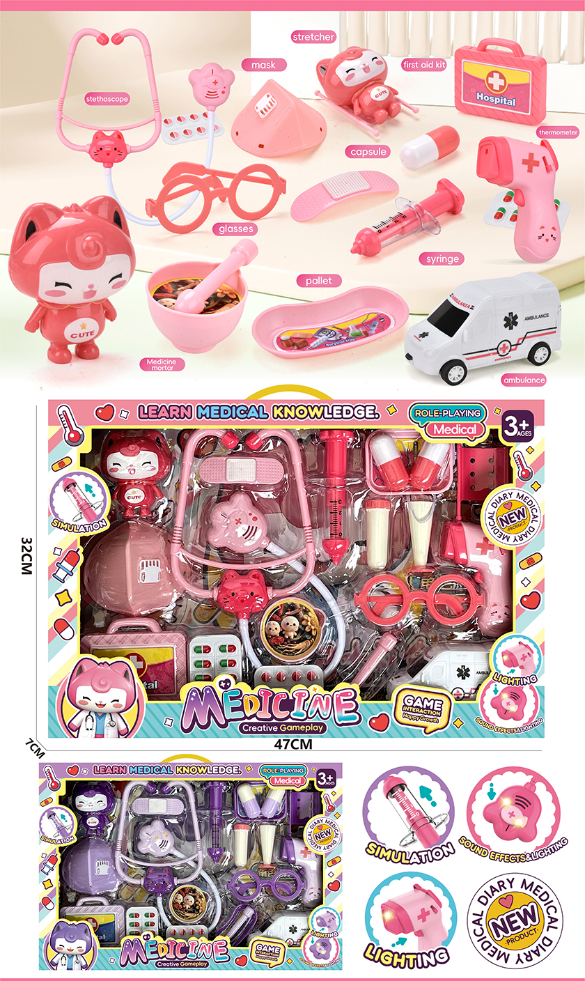 MEDICAL SET W/LIGHT&SOUND W/BUTTON BATTERY(2 COLOUR ASST.)