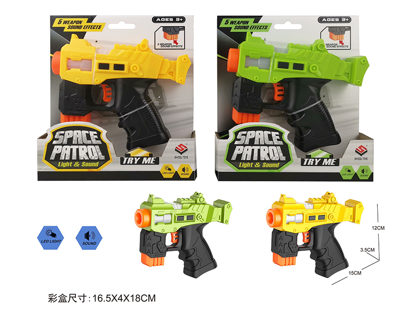 B/O GUN W/LIGHT&SOUND W/BATTERY(2 COLOR ASST.)
