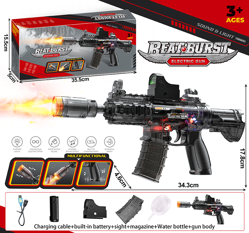 B/O GUN W/LIGHT&SOUND&SPRAY W/BATTERY&USB CHARGER