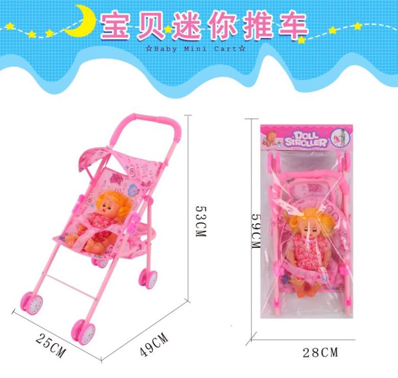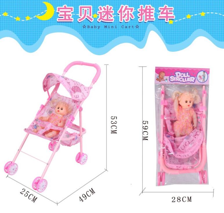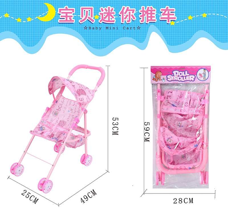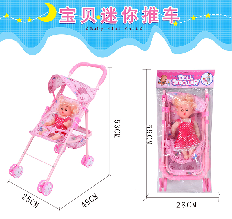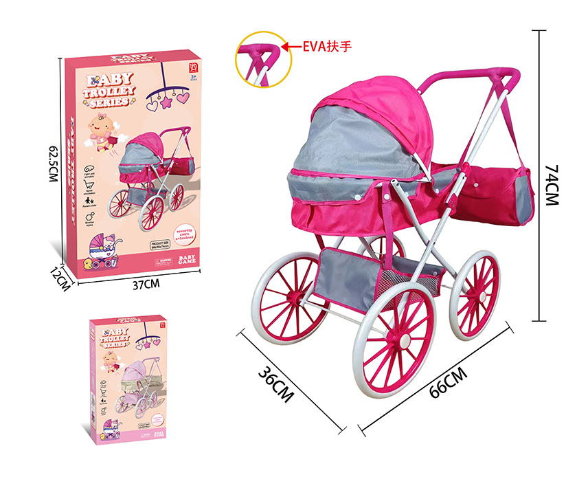 BABY IRON CARRIAGE W/12''EMPTY BODY DOLL(2 COLOR ASST.)