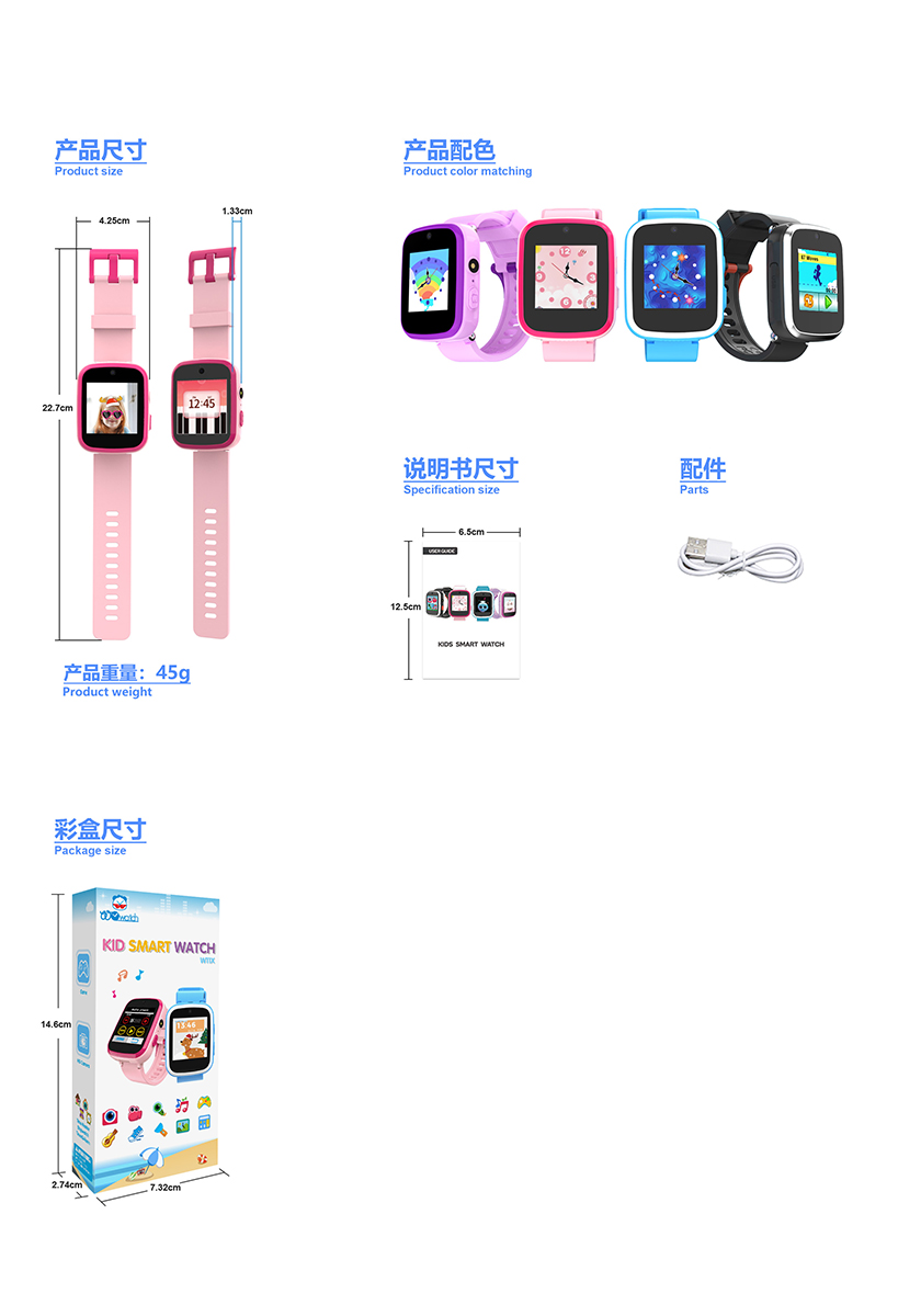 WATCH W/MUSIC&DOUBLE CAMERA&LIGHT W/BATTERY&USB CHARGER