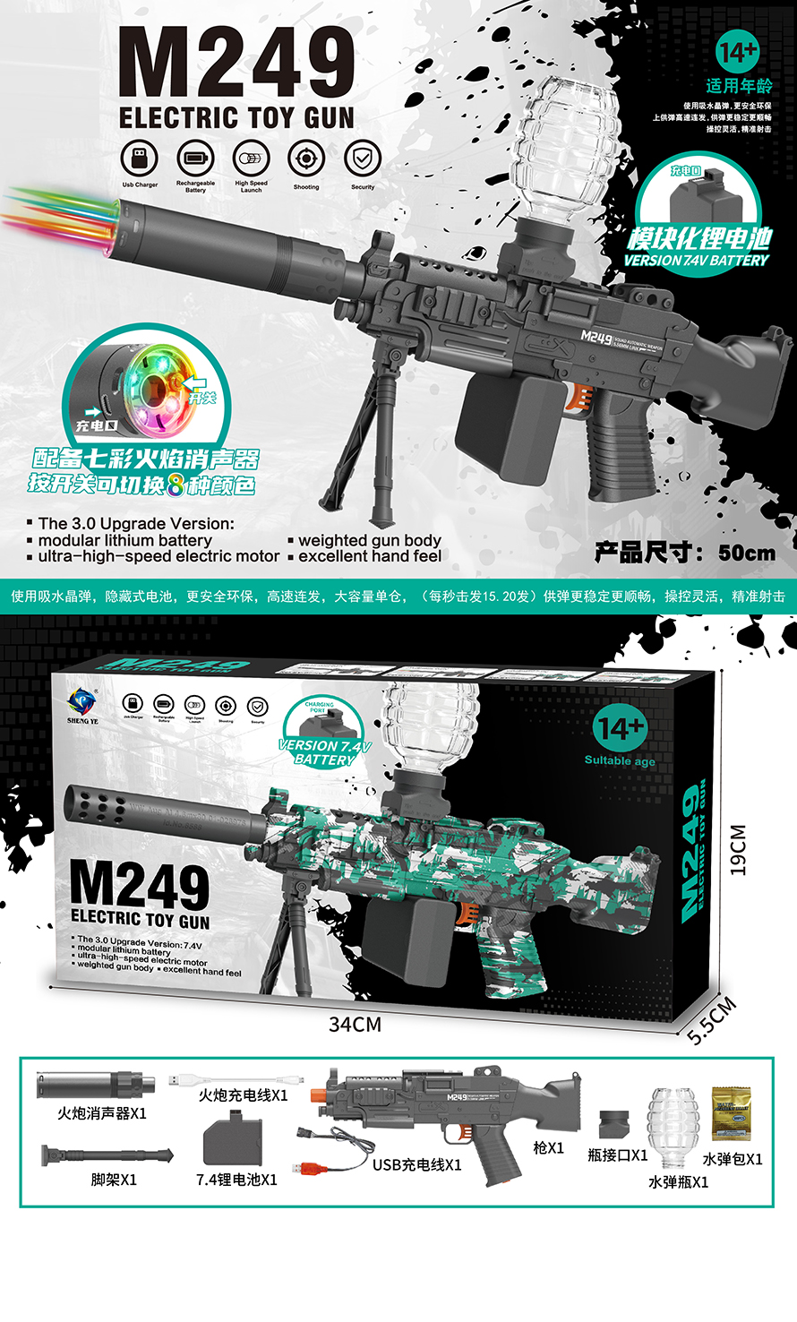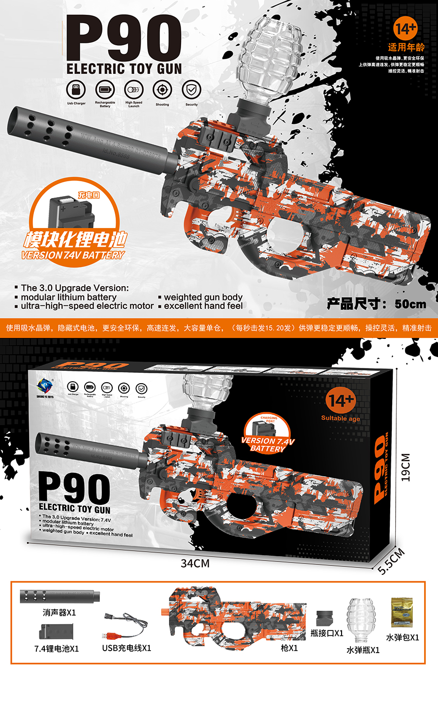 product_name: B/O WATER BULLET GUN W/BATTERY&USB CHARGER