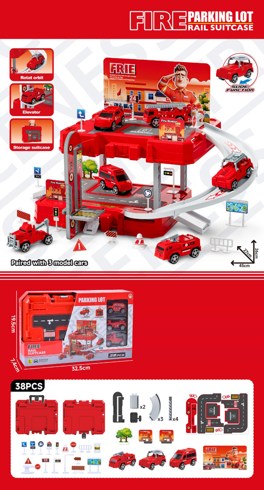 PARKING LOT SET W/3PCS FREE-WHEEL CAR