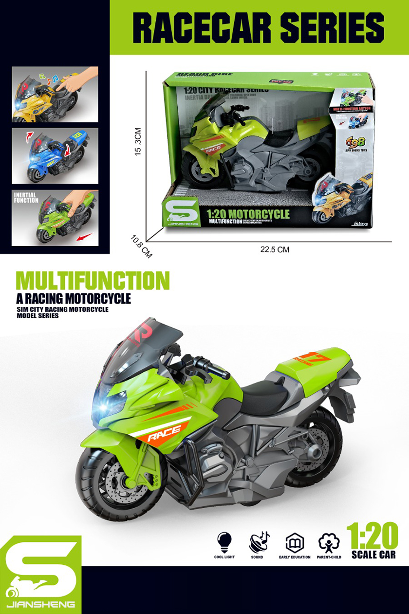1:20 FRICTION MOTORCYCLE W/LIGHT&MUSIC&BUTTON BATTERY