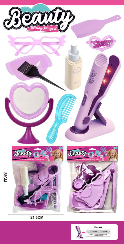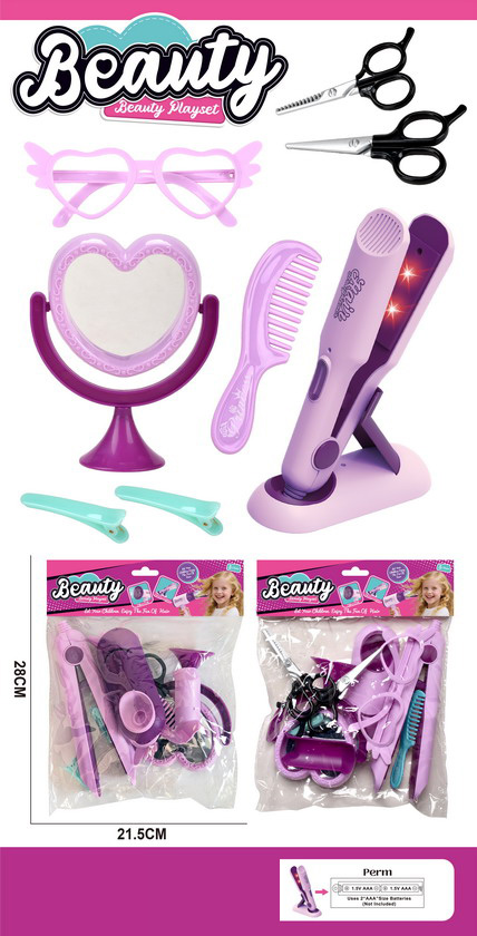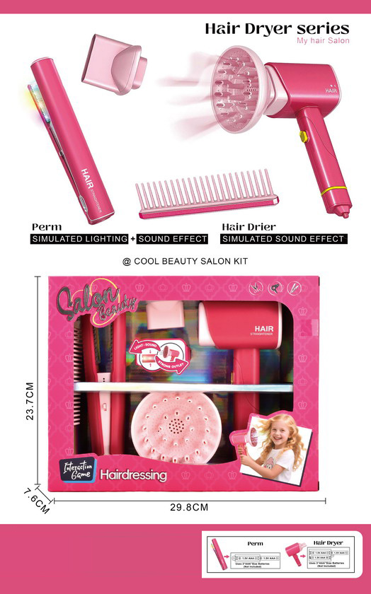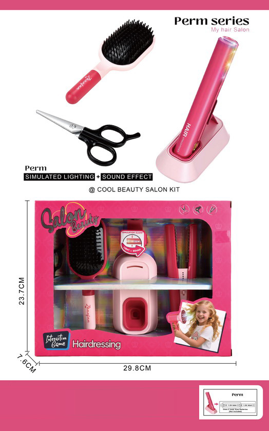 HAIRDRESSING SET W/LIGHT W/O BATTERY 11PCS(2 COLOUR ASST.)