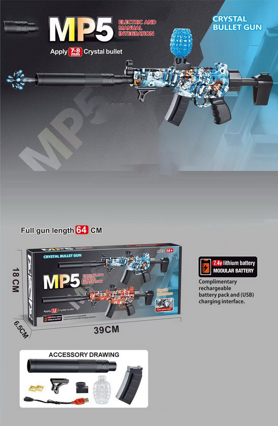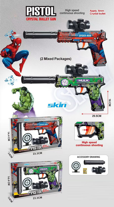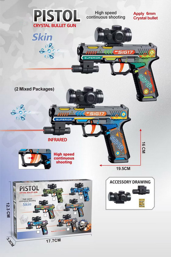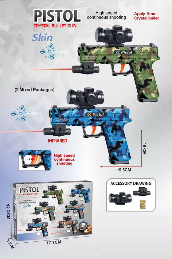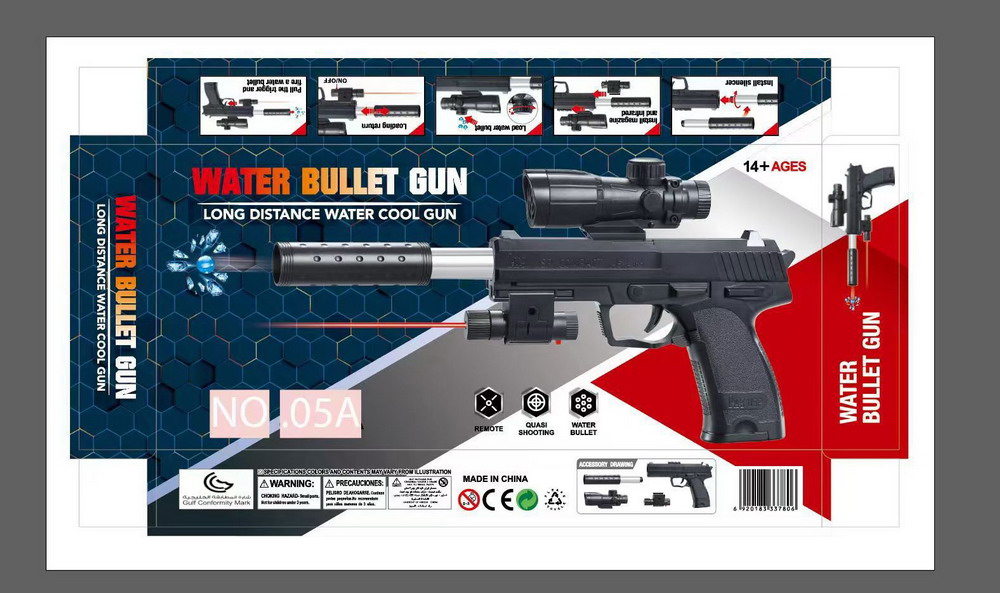 WATER BULLET GUN W/INFRARED RAY W/BUTTON BATTERY