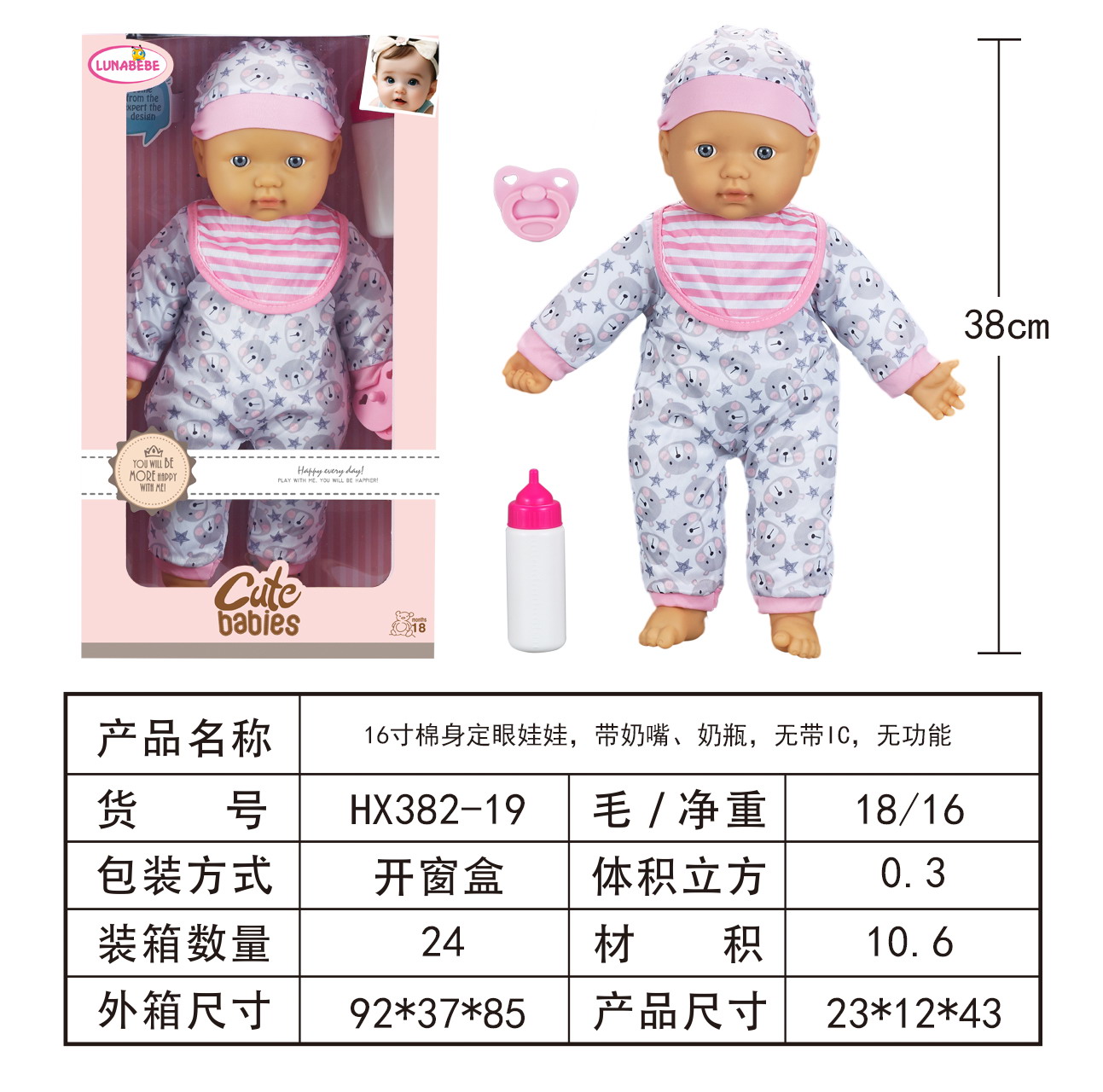 13"COTTON BODY DOLL SET W/4 SOUND IC&BUTTON BATTERY