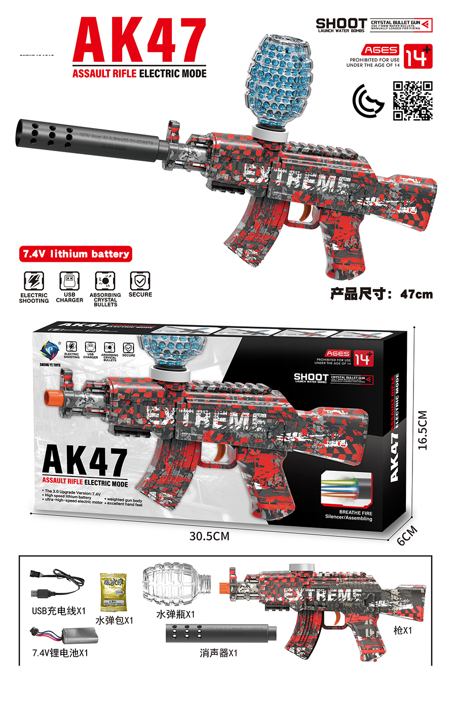 B/O WATER BULLET GUN W/LIGHT W/BATTERY&USB CHARGER